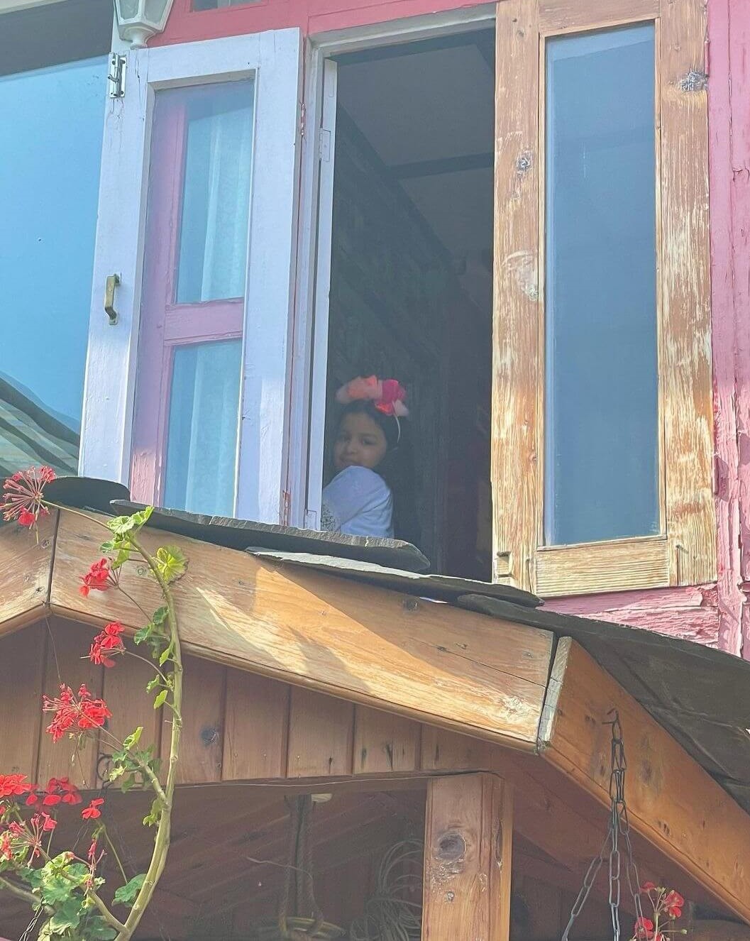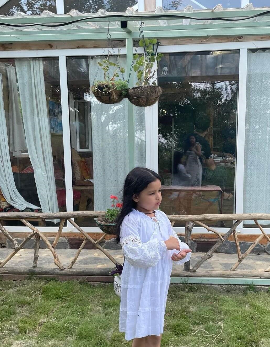આ ફોટામાં જીવા હિમાચાલી છોકરીની જેમ જૂટ બેગ લઇને ક્યાંક જતા જોવા મળી રહી છે. ઉપર વાદળી આકાશ અને પાછળની હરિયાળી આ ફોટાને સંપૂર્ણ બનાવે છે.