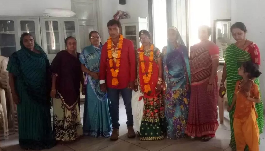 પોરબંદરના ખાંભોદર રહેતા અને ટુર્સ અને ટ્રાવેલ્સના ધંધા સાથે સંકળાયેલા હિતેશકુમાર નામનો યુવાન પસંદ આવતા રેખાબેનની મરજી મુજબ તાજેતરમાં જ રેખાબેન અને હિતેશકુમારના આર્યસમાજ વિધિ સાથે લગ્ન યોજવામાં આવ્યા હતા.