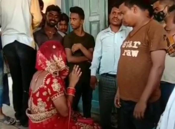 यूपी के भदोही जिले में एक युवक दुल्हन बनकर अपनी प्रेमिका से मिलने उसके घर पहुंच गया। pic.twitter.com/kYynJobHCY