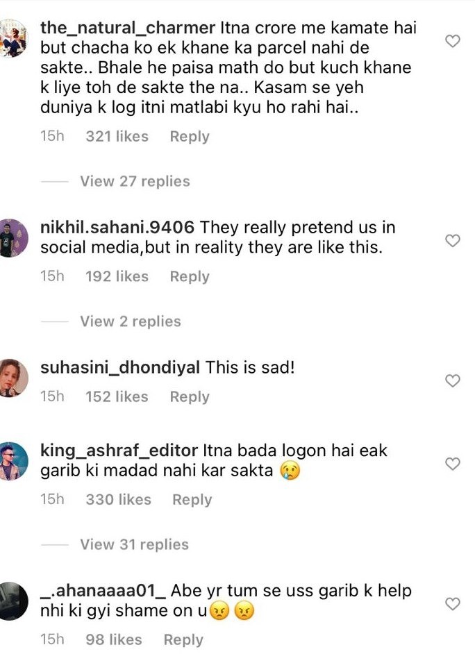 આ ઉપરાંત એક યુઝરે લખ્યું હતું કે તમે વધારે ગરીબ દેખાય રહ્યા છો શ્રદ્ધા કપુર, કે તમે એક વૃધ્ધ ભિખારીને 50-100 રૂપિયા પણ આપી શક્યા નહીં. એક યુઝરે લખ્યું કે આ લોકો કરોડો કમાય છે પરંતુ કોઇ જરૂરિયાતમંદ વ્યક્તિને મદદ કરી શકતા નથી. તે સિવાય અન્ય ઘણાં યુઝરે પણ શ્રદ્ધા દ્વારા વૃદ્ધ ભિખારીને નજરઅંદાજ કરવા પર તેની આલોચના કરી હતી. એક કોમેન્ટમાં તો એવું પણ કહેવામાં આવ્યું હતું કે આ લોકો ફક્ત કેમેરાની સામે દાન કરે છે.